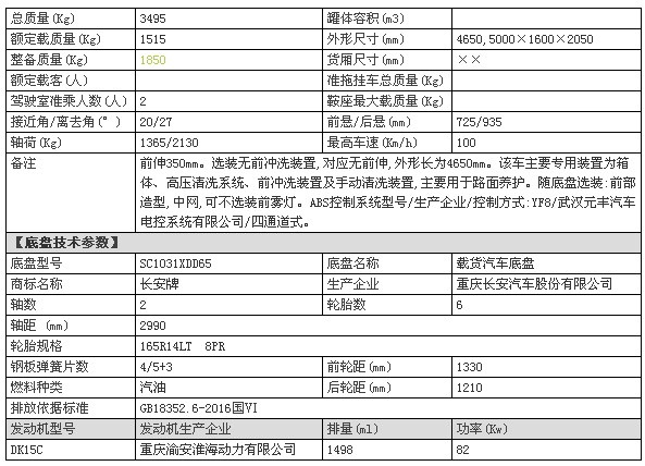 采用長(zhǎng)安底盤(pán),軸距2990mm,后視鏡帶轉(zhuǎn)向燈,重慶渝安112馬力發(fā)動(dòng)機(jī),5檔變速箱,前盤(pán)后鼓剎車(chē),帶ABS,175真空胎,直通大梁,帶原廠空調(diào)、原廠電子方向助力、原廠獨(dú)有變速箱取力器。