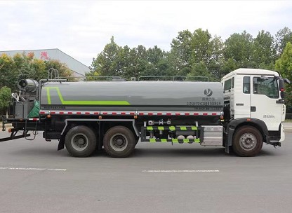 其他:罐體5mm厚,采用60-90大功率灑水泵,標配前沖、后灑、側噴、綠化高炮,尾部大平臺可安裝60-120米霧炮,帶空調、電動門窗、氣囊座椅。