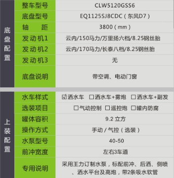 二、國六東風(D7)9.2方灑水車上裝選裝樣式:
