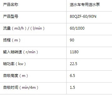 型號(hào):80QZB(F) 60/90 流量(m3/h):60m3,揚(yáng)程(m):90,輸出轉(zhuǎn)速:1480,軸功率(kw):22.5,自吸高度(m):6.5,自吸時(shí)間(min/5m):1.0效率:65%,備注:左、右旋轉(zhuǎn)